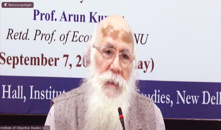 Eminent economist and ex-professor of economics, Jawaharlal Nehru University, New Delhi, Prof. Arun Kumar delivered the lecture. Currently, he is the Malcolm Adiseshiah Chair Professor in the Institute of Social Sciences, JNU. He specialises in development, economics, public finance, public policy and macro-economics. He was also a part of the team to study the black economy for CBDT (1982-85).