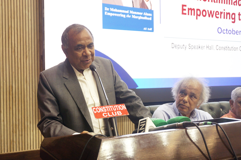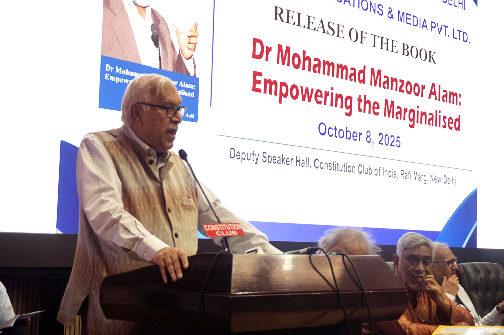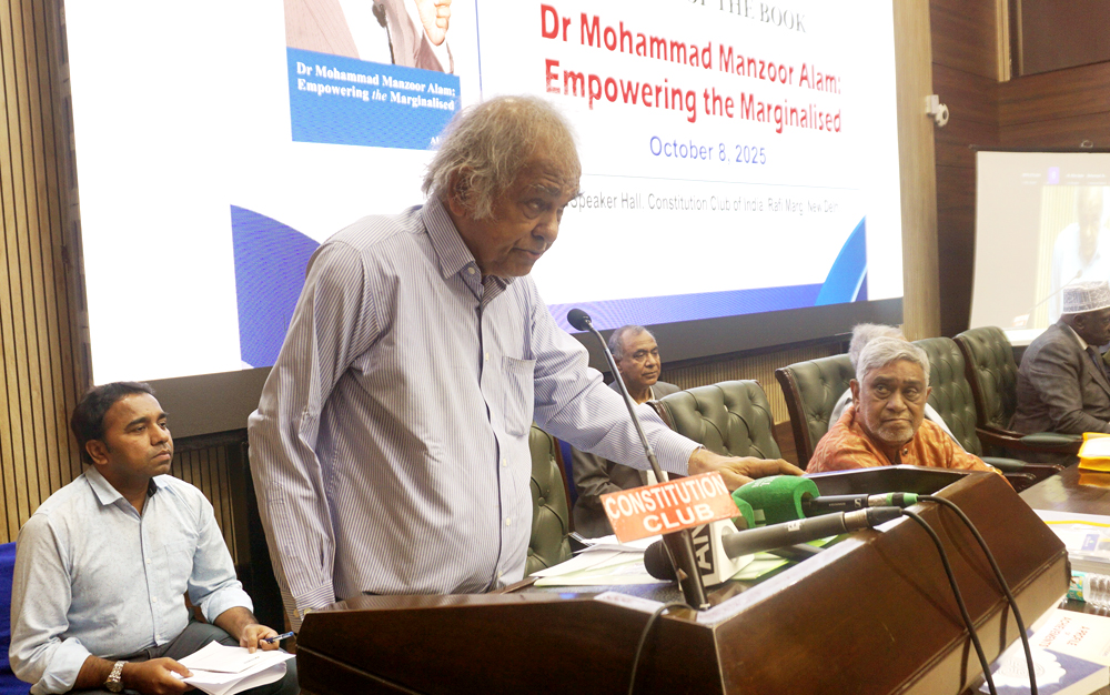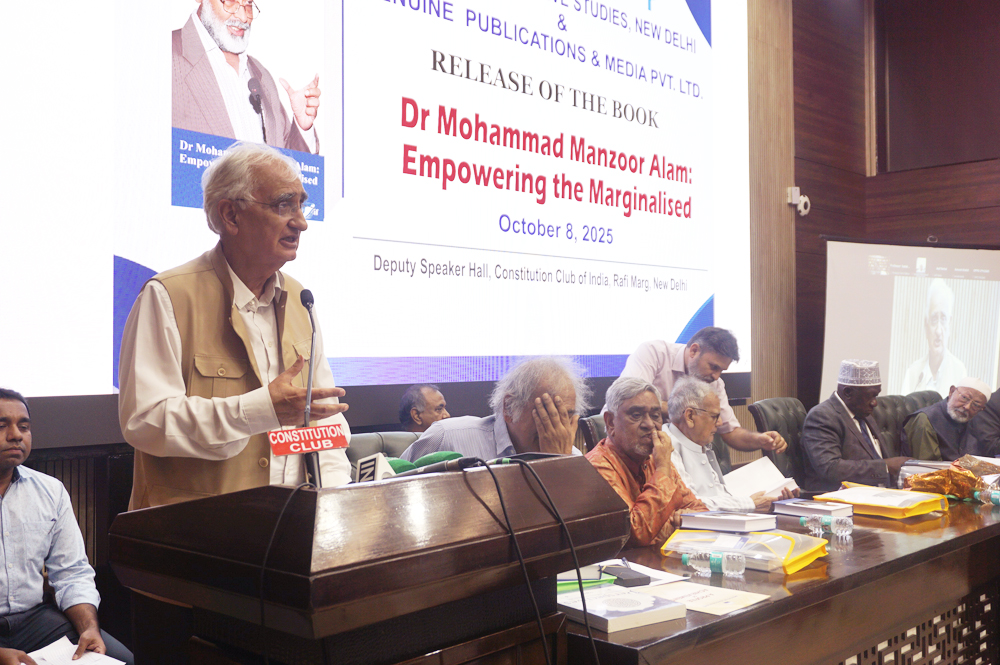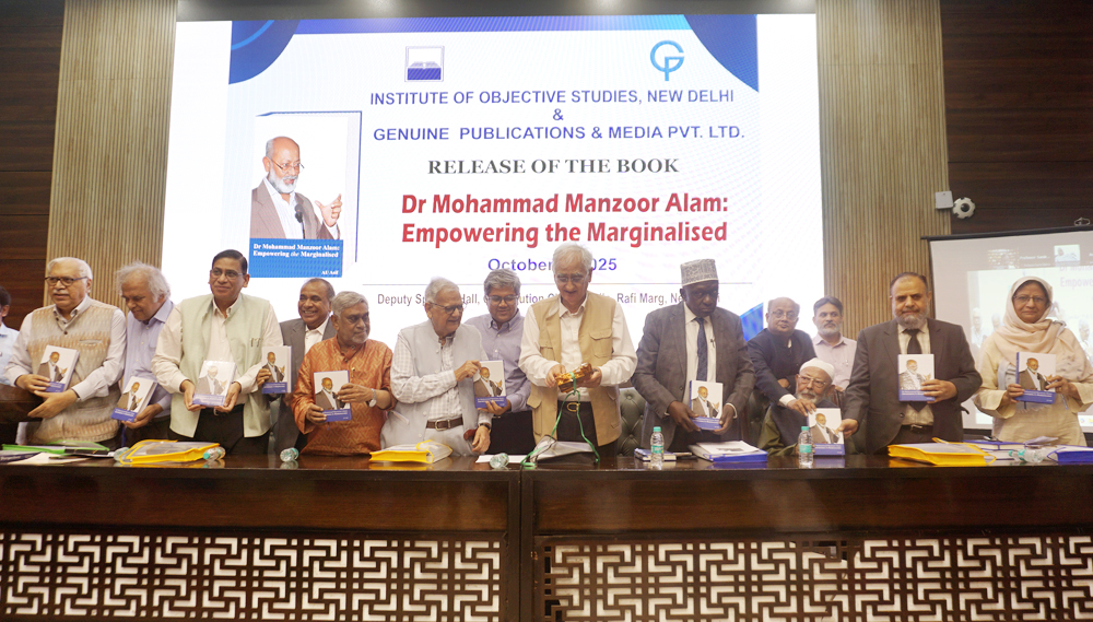 New Delhi: A biography of the founder-chairman and currently Chief Patron of the Institute of Objective Studies (IOS), Dr. Mohammad Manzoor Alam, was released at an impressive function jointly organised by the IOS and Genuine Publications & Media Pvt. Ltd., at the Deputy Speakers Hall, Constitution Club of India on October 8, 2025. The biography Dr Mohammad Manzoor Alam: Empowering the Marginalised, compiled by the Delhi-based senior journalist, Mr. A. U. Asif, profiles Dr. Alam’s life and his contribution to social uplift of weaker sections by way of research and action.