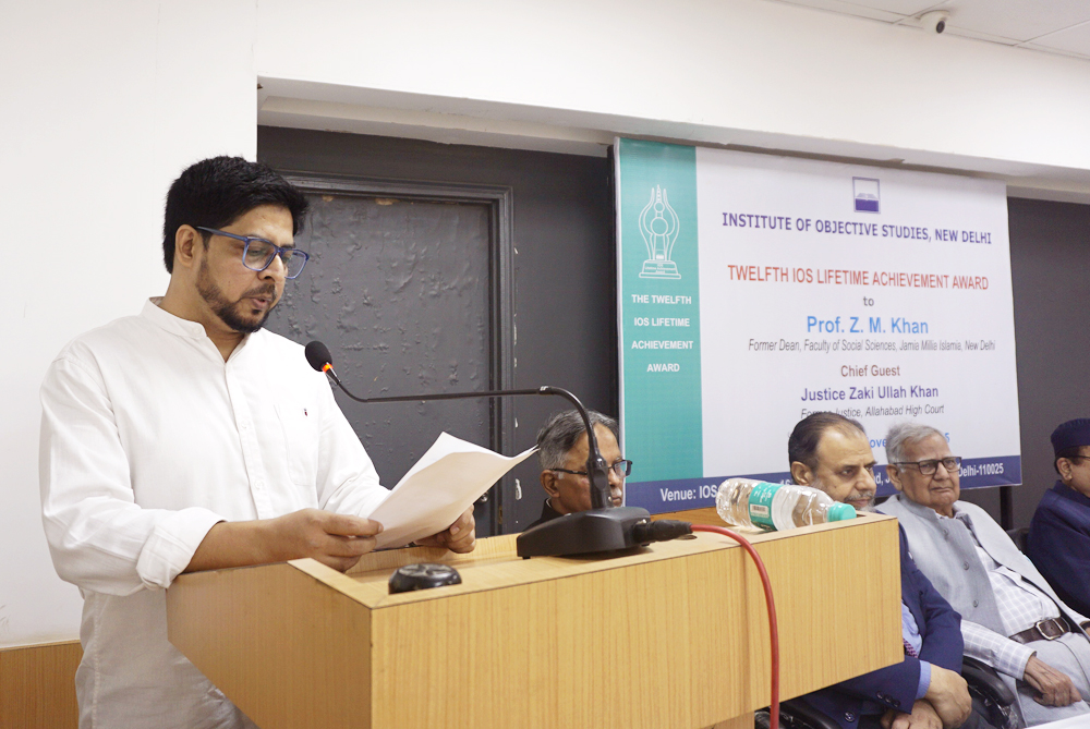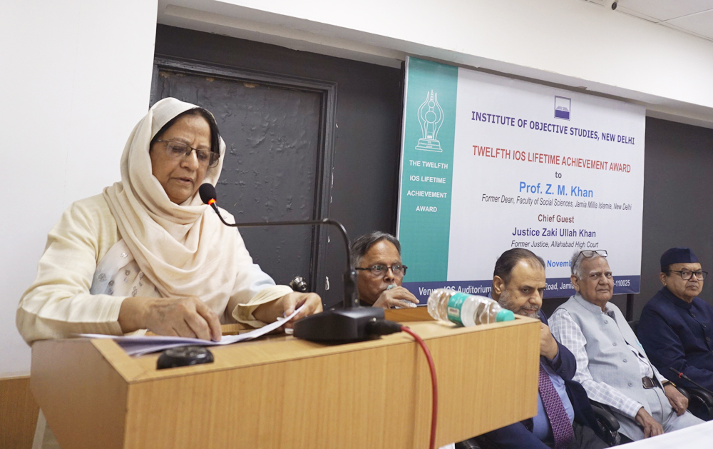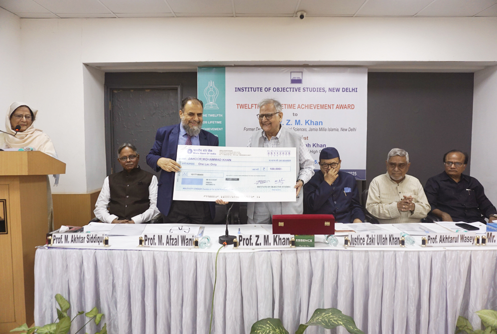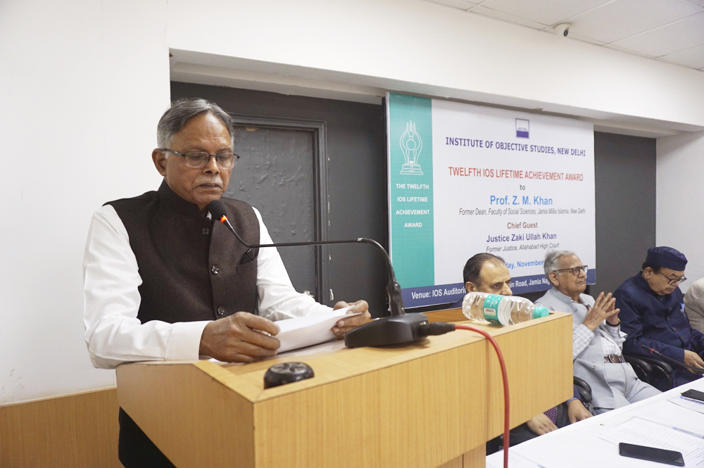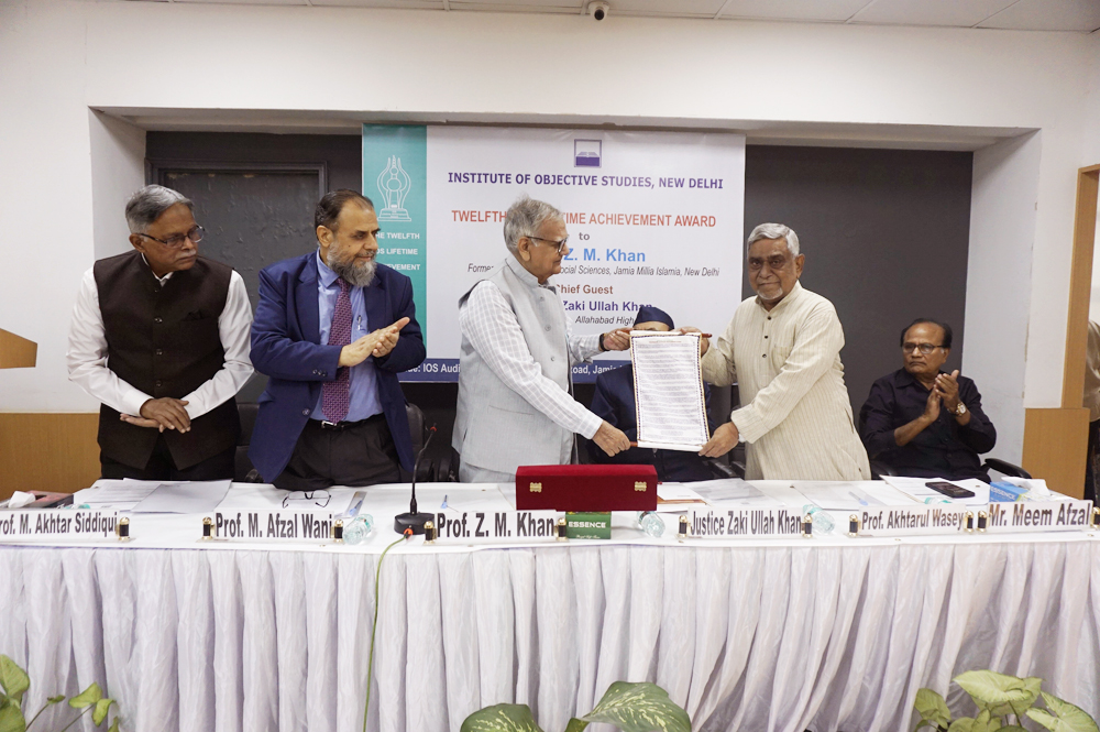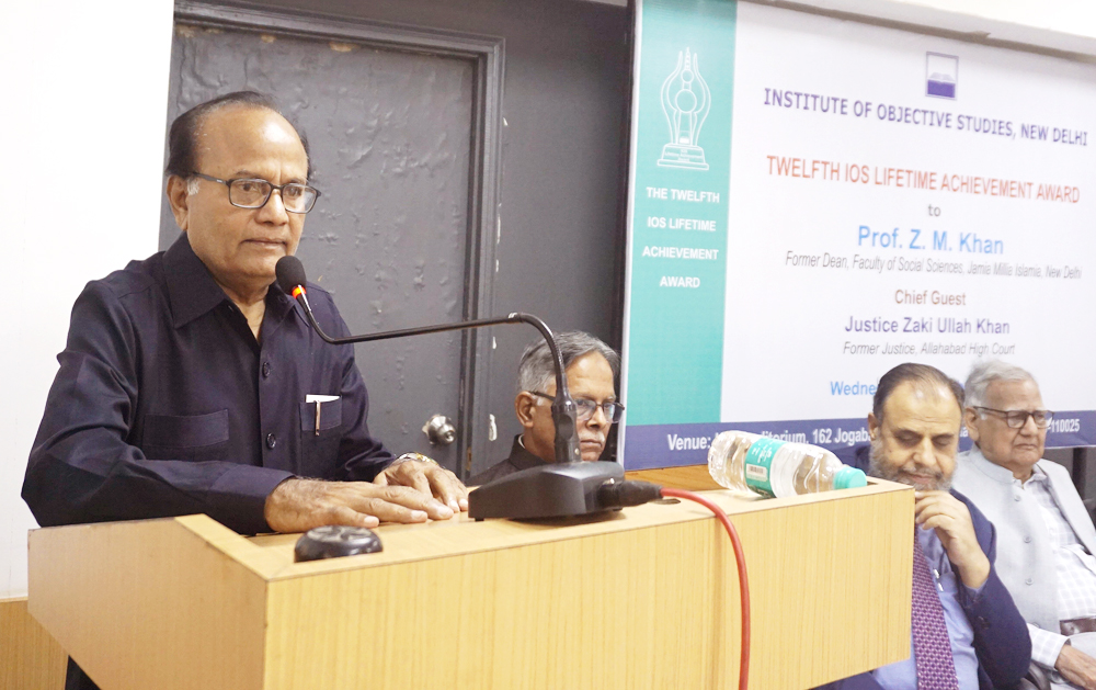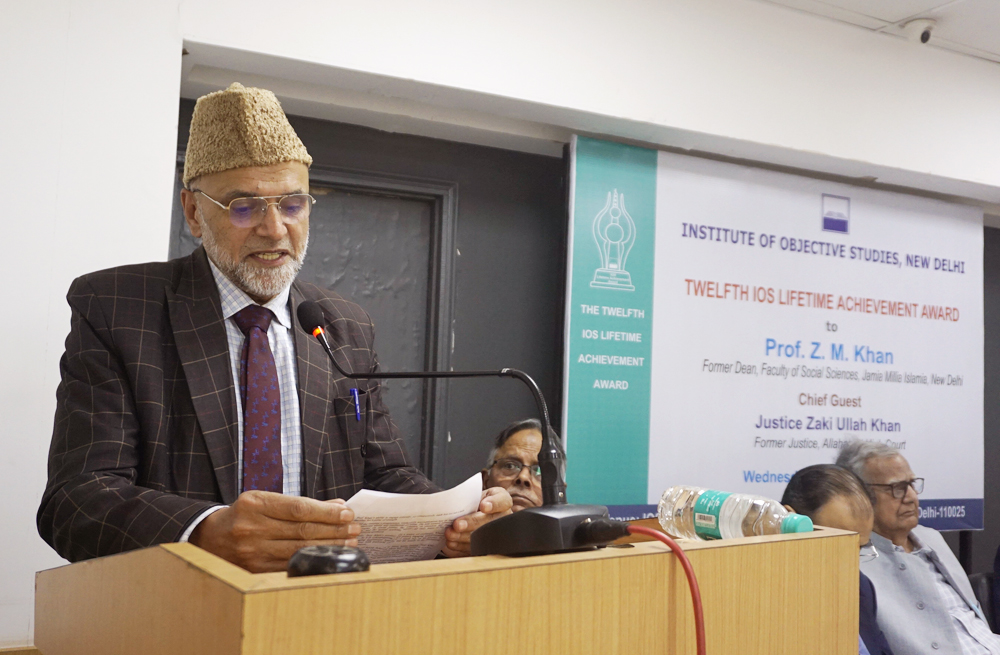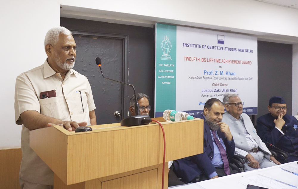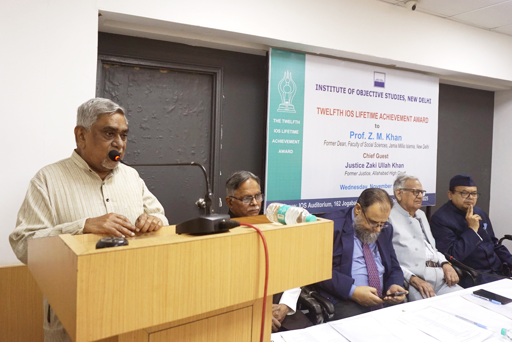 New Delhi: The Twelfth IOS Lifetime Achievement Award was presented to Prof. Z. M. Khan (Zahoor Mohammad Khan) the former Dean, Faculty of Social Sciences, Jamia Millia Islamia, at an impressive investiture ceremony organised by the Institute of Objective Studies at its auditorium on November 5, 2025.