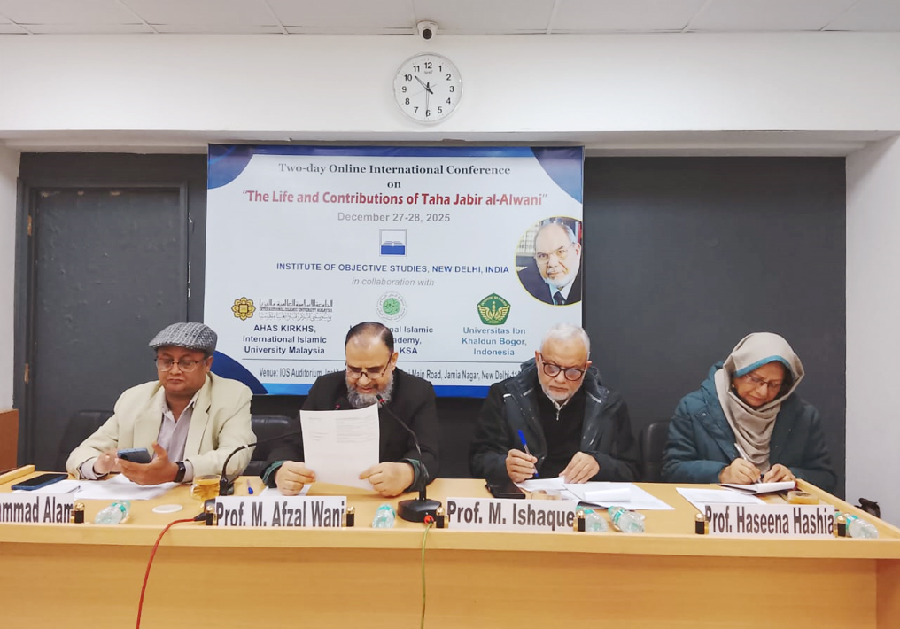 It is a matter of immense satisfaction that the Institute of Objective Studies (IOS), New Delhi, India, in collaboration with the AbdulHamid AbuSulayman Kulliyyah of Islamic Revealed Knowledge and Human Sciences (AHAS KIRKHS), the International Islamic University Malaysia; the Universitas Ibn Khaldun (UIK) Bogor, Indonesia and the International Islamic Fiqh Academy (IIFA), Jeddah, KSA successfully organised a two-day online international conference on “The Life and Contributions of Taha Jabir al-Alwani” at New Delhi on December 27-28, 2025 in which academicians and scholars, at a good scale from many nations, like India, USA, KSA, Malaysia, Indonesia, Qatar, Jordan, Bosnia and Herzegovina, Maldives, Georgia, etc., participated and presented their research papers.