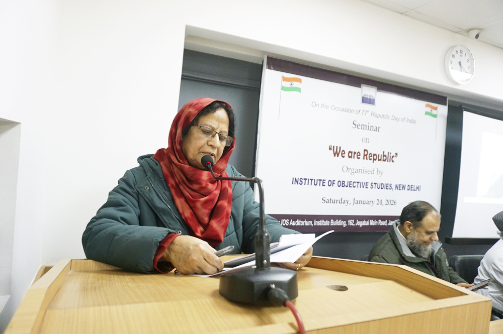 Dr. Aftab Alam, Associate Professor of Political Science at Zakir Husain College, Delhi, conducted the proceedings. Introducing the IOS, he said that it was engaged in conducting research in various fields, particularly on the socio-economic status of deprived sections, including Muslims. The Institute regularly organises national and international seminars, conferences, and discussions on various subjects and issues. It has so far published around 500 titles on a variety of subjects. It also provides a platform to scholars and public intellectuals. He said that discussion on the idea of a republic assumes more importance in the present context.